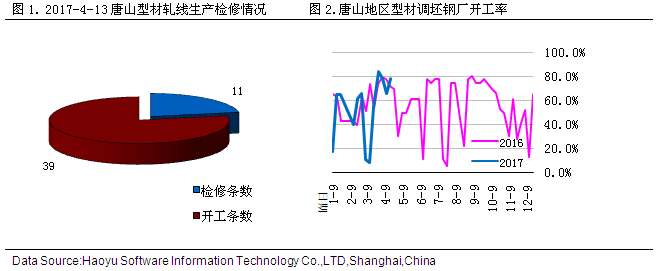 唐山型材鋼廠開工率上升。據(jù)成都鋼鐵網(wǎng)4月13日統(tǒng)計(jì),34家型廠50條生產(chǎn)線開工39條,較上周增加6條,開工率為78.00%,較上周上升了12.00%。 三、市場庫存概覽