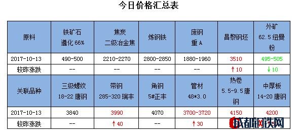 唐山鋼市綜述】13日期螺持續(xù)飄紅,使得原本注定走低的行情出現(xiàn)了轉(zhuǎn)機(jī),今晨唐鋼坯漲10,成品漲后成交尚可,另消息面,遵化地區(qū)所有選礦廠自10月12日0時(shí)至2018年3月31日24時(shí)止停止一切生產(chǎn)行為,如發(fā)現(xiàn)違規(guī)生產(chǎn),將進(jìn)行變壓器銷號(hào)處理,環(huán)保形勢(shì)日益嚴(yán)峻,料明續(xù)揚(yáng),建議關(guān)注期螺走勢(shì)。