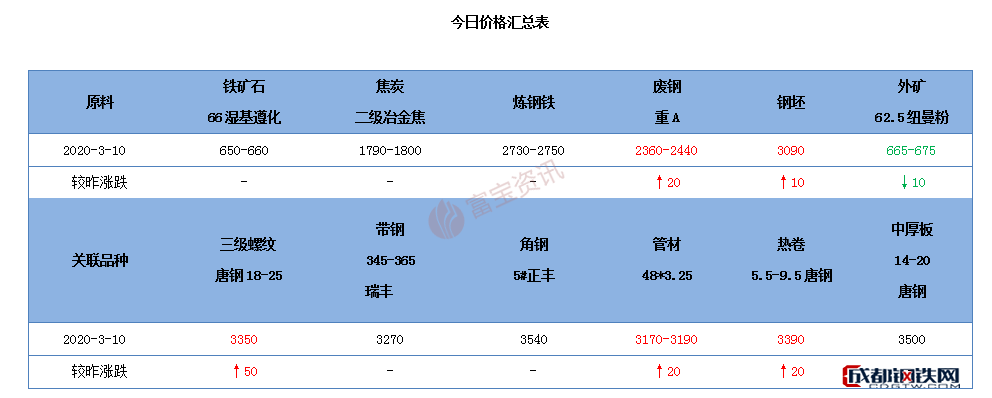 【唐山鋼市綜述】10日鋼市開盤趨強(qiáng),坯料成交順暢,成品亦呈拉漲趨勢(shì)。但值得警惕的是,昨夜美股狂泄逾2000點(diǎn),盤中觸發(fā)熔斷機(jī)制,暫停交易15分鐘,是為2008年以來美股首次熔斷,外部金融風(fēng)險(xiǎn)較大,考慮目前市場(chǎng)運(yùn)行的不確定性因素較多,形式復(fù)雜多變,建議商家理性投資,隨行就市。| 品種 | 今日行情 | 短期預(yù)測(cè) |
