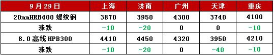 鋼聯(lián)資訊9月29日訊,截至發(fā)稿,全國25個主要城市螺紋鋼價格窄幅震蕩。其中,上海、濟南、重慶等6個城市螺紋鋼價格小跌10-20元/噸,北京市場螺紋鋼價格小漲10元/噸,其他城市持穩(wěn)運行。