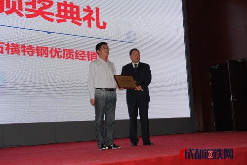 會(huì)議期間,謝慶一代表石橫特鋼集團(tuán)有限公司向山東維豐工貿(mào)有限公司授予了“石橫特鋼棗莊區(qū)域優(yōu)質(zhì)經(jīng)銷商”榮譽(yù)稱號(hào)并頒發(fā)牌匾。