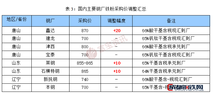 本周國內(nèi)主導(dǎo)鋼廠內(nèi)粉采購價(jià)穩(wěn)中有漲,周內(nèi)普指一路下探,但隨著各地復(fù)工增加及運(yùn)輸條件的改善,礦石基本面還算可以,港口庫存下降疊加鋼廠礦石庫存偏低,一定程度上對礦價(jià)有所支撐。山東地區(qū)大礦上周末普遍小漲10,庫存不高價(jià)格堅(jiān)挺,鋼廠只能買賬上調(diào)價(jià)格采購。唐山地區(qū),前期受鋼坯提漲影響,礦商對鋼廠堅(jiān)定抬價(jià),如唐山鑫達(dá)、國義,